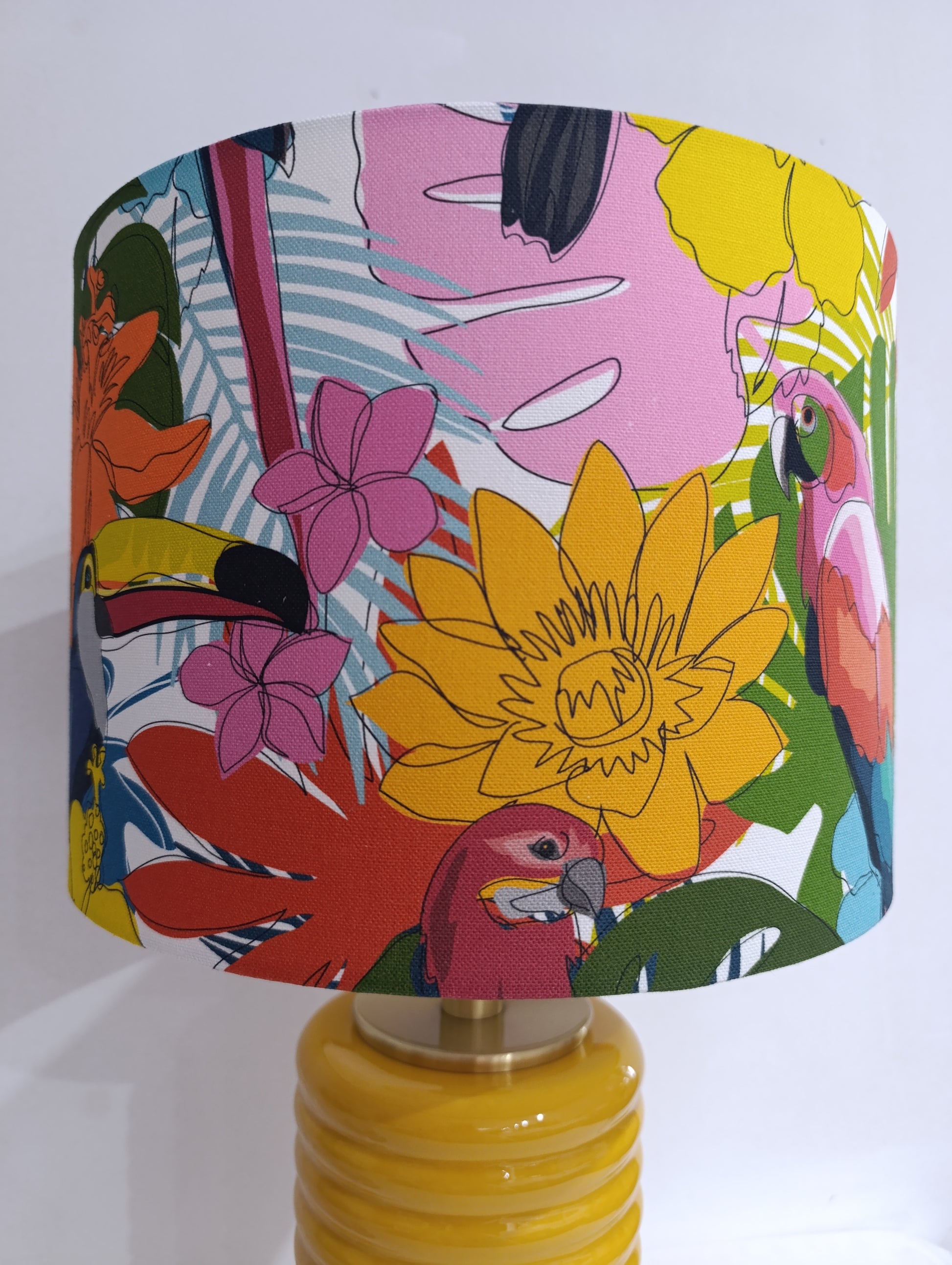 Inspirado na exuberância das florestas tropicais, este abajur traz para o interior da sua Casa uma explosão de cor, vida e alegria.