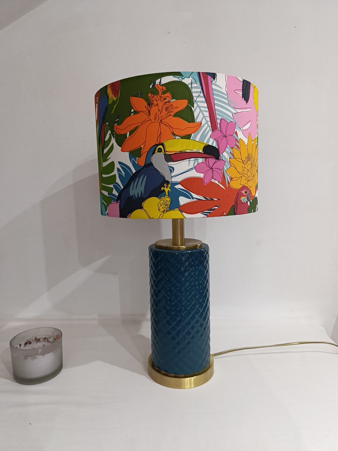 Abajur feito à mão, no nosso estúdio em Portugal, com tecidos exclusivos e rigorosamente selecionados. Design vibrante e único. Transforma o teu espaço com esta peça exclusiva que combina tradição artesanal portuguesa com design contemporâneo.
