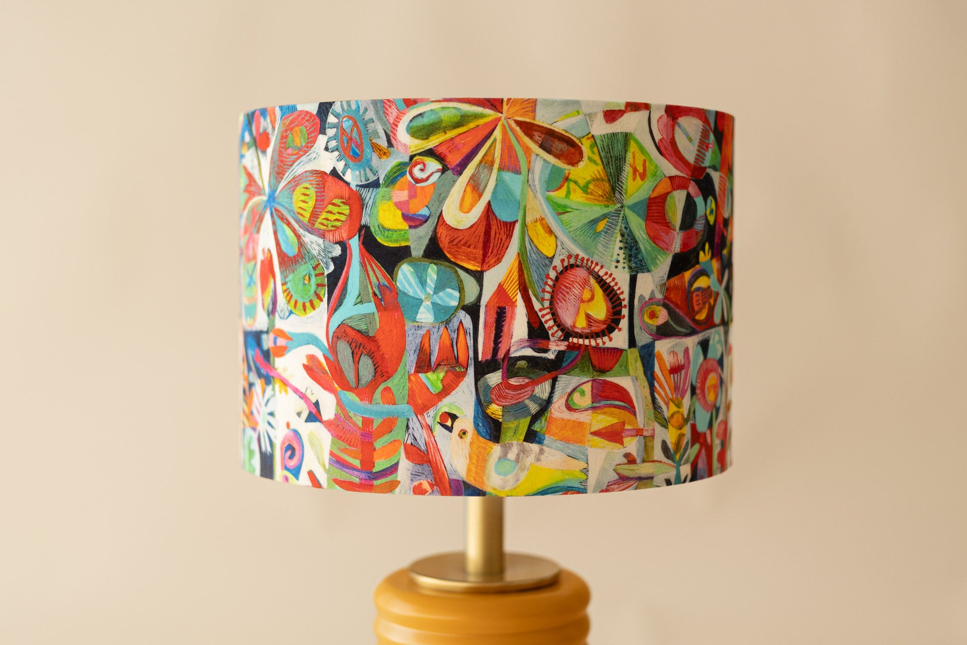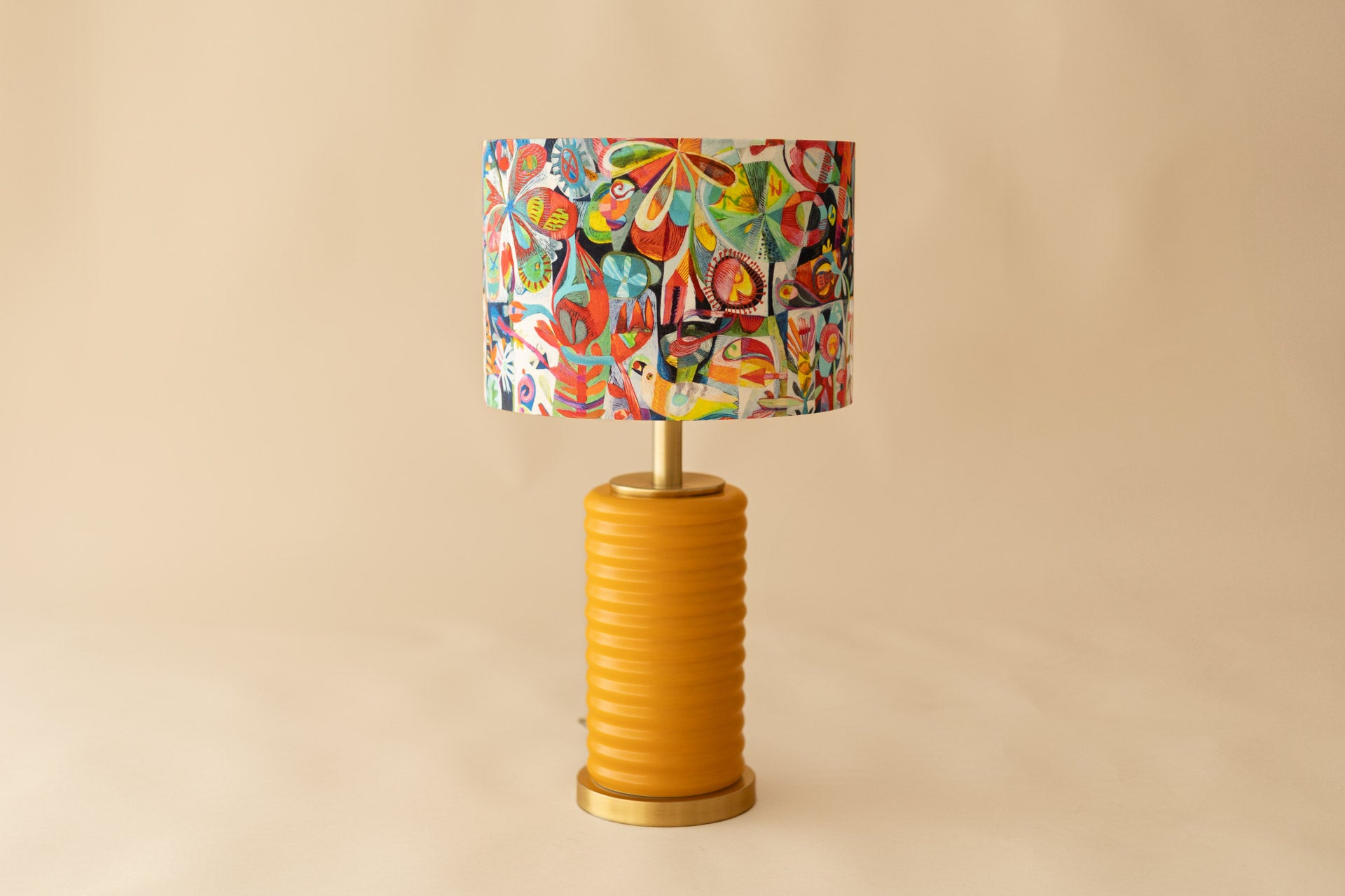 O abajur Explosão de cor transforma qualquer espaço num cenário artístico pulsante, onde formas orgânicas, traços ousados e núcleos intensos se encontram como num quadro em movimento.