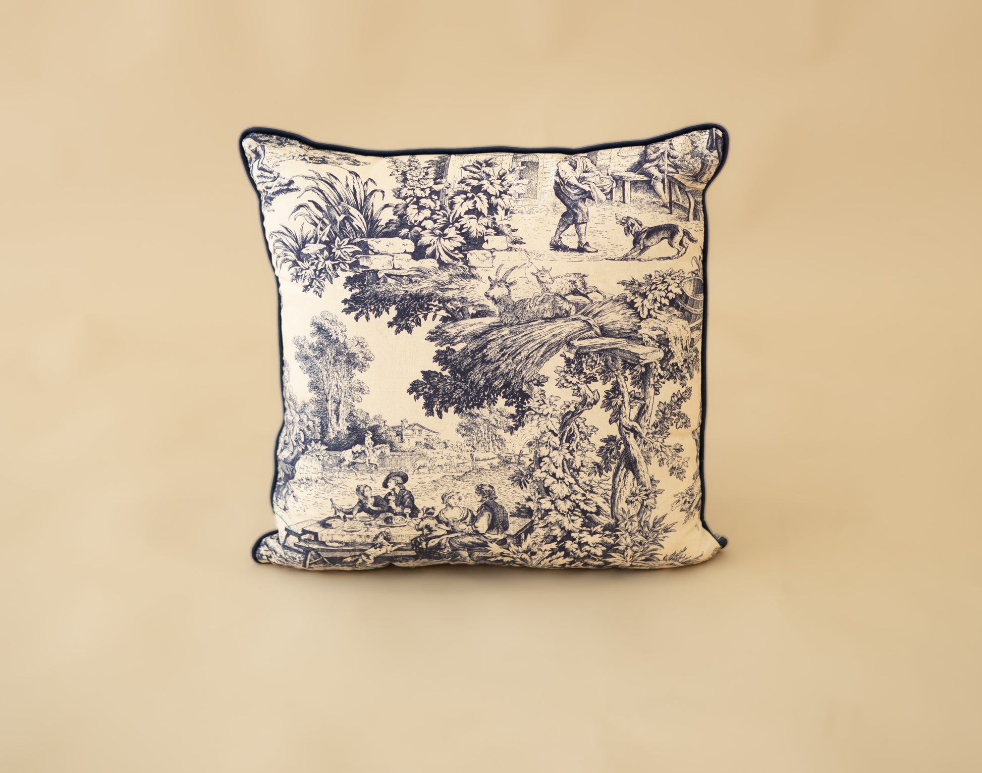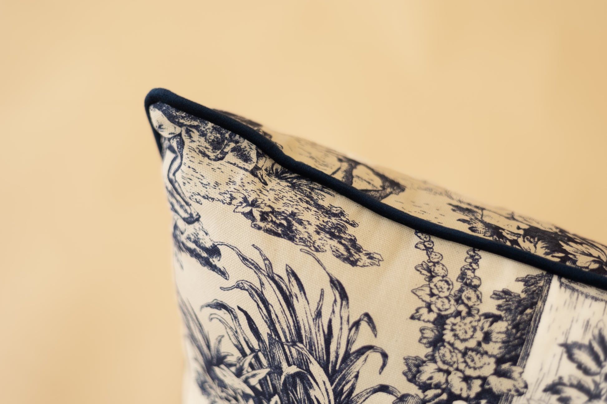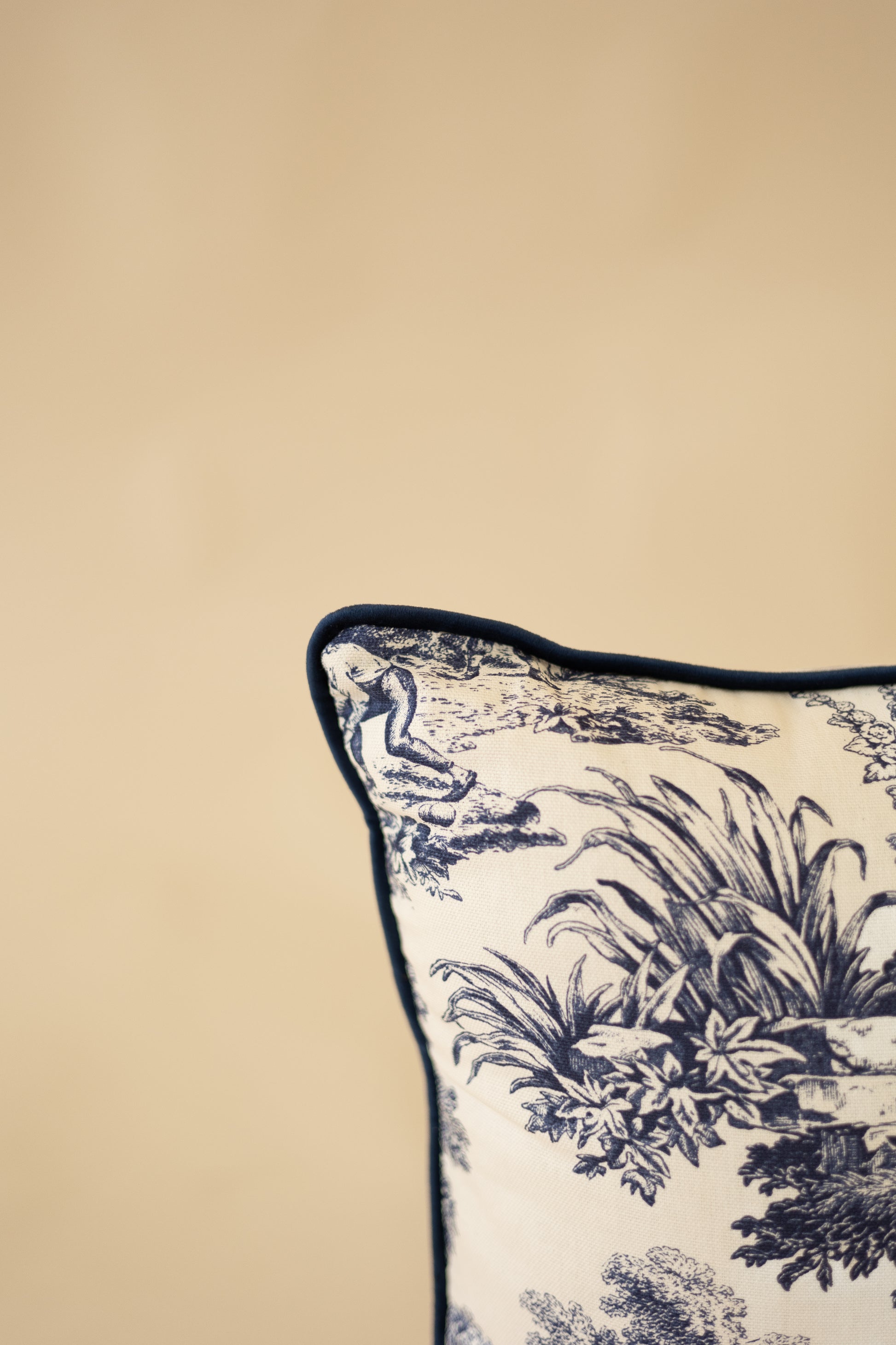 Há tecidos que contam histórias... Um encontro entre o que é simples… e o que é eterno! Inspirado na serenidade do campo e na estética do Toile de Jouy em azul profundo, este modelo é uma ode à beleza bucólica. Um encontro entre o que é simples... e o que é eterno. Feito à mão, com tecidos selecionados e intenção emocional em cada detalhe.