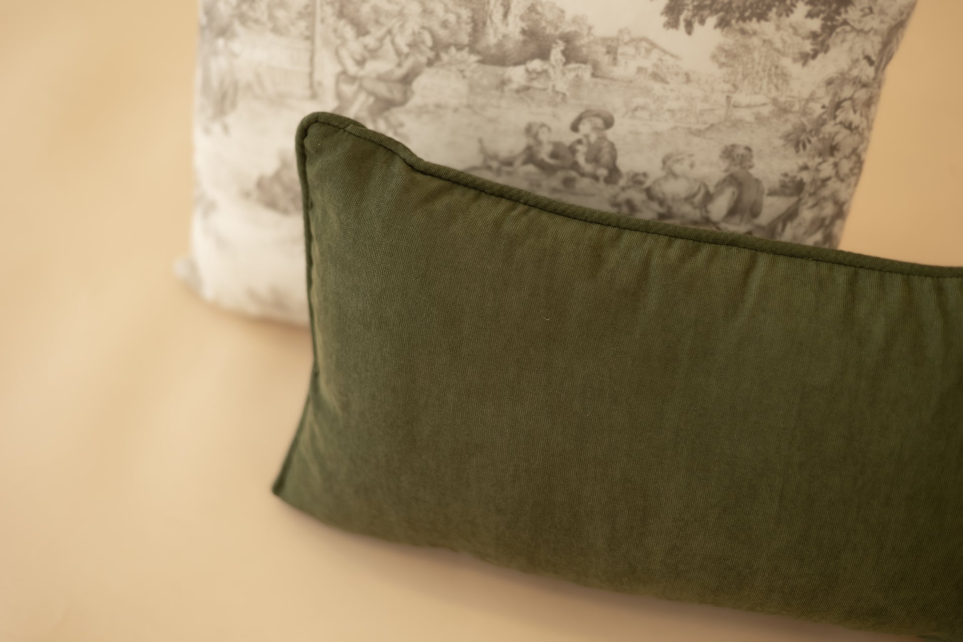 Produzido em Portugal. Almofada vendida com enchimento. (Almofada verde é decorativa, não incluída). Produzimos noutras dimensões a pedido.