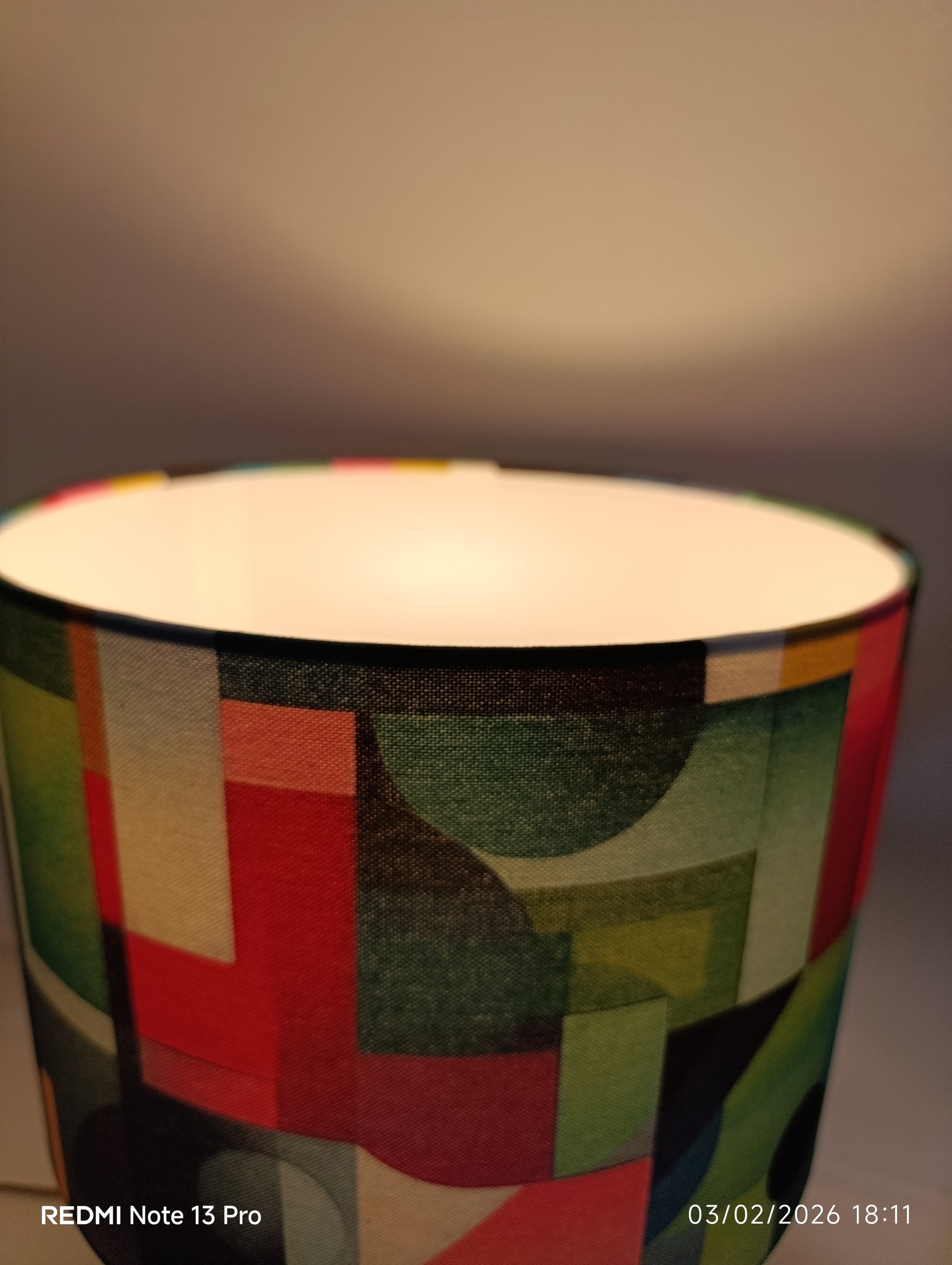 O abajur da foto foi produzido em formato cilíndrico e com painel interior Branco. Para outras opções, por favor, preencha o formulário no separador "PERSONALIZAR PRODUTO", e dá luz verde à tua imaginação! Nota: O pé do candeeiro não está incluído.